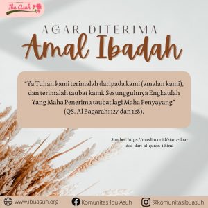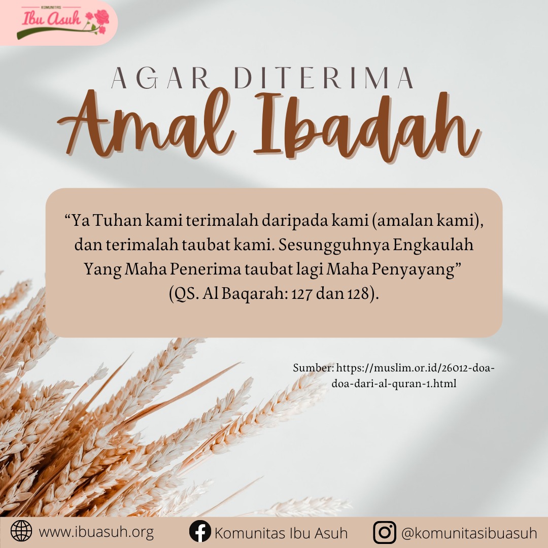 “Ya Tuhan kami terimalah daripada kami (amalan kami), dan terimalah taubat kami. Sesungguhnya Engkaulah Yang Maha Penerima taubat lagi Maha Penyayang” (QS. Al Baqarah: 127 dan 128).