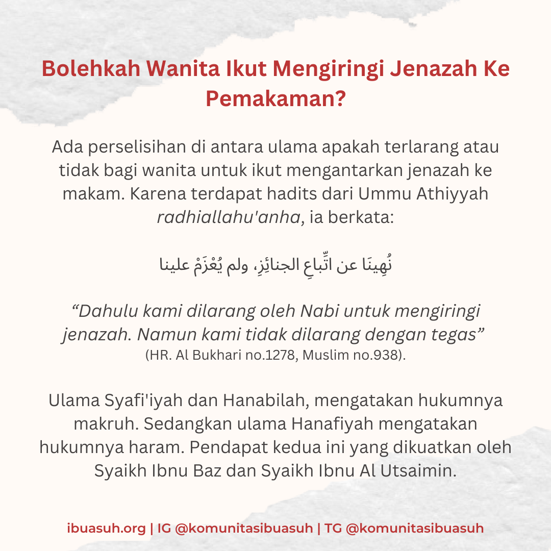 Ulama 4 madzhab sepakat tentang dianjurkannya laki-laki untuk mengantarkan jenazah ke makam. Berdasarkan hadits dari Abu Hurairah radhiallahu’anhu, Nabi Shallallahu’alaihi…