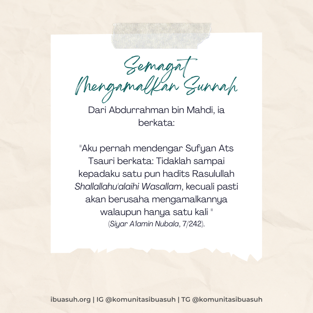 Tidaklah sampai kepadaku satu pun hadits Rasulullah Shallallahu'alaihi Wasallam, kecuali pasti akan berusaha mengamalkannya walaupun hanya satu kali