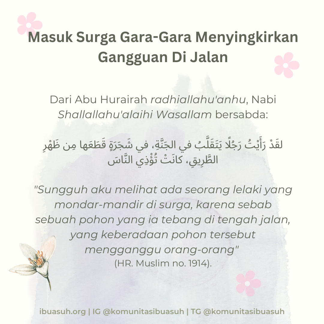 Sungguh aku melihat ada seorang lelaki yang mondar-mandir di surga, karena sebab sebuah pohon yang ia tebang di tengah jalan,…